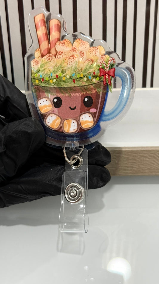 Hot chocolate shaker, Christmas, retractable badge reel, medical ID holder, Christmas gift, nurse gift, hot cocoa shaker, marshmallows.