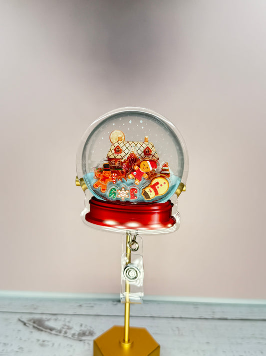 Gingerbread House Badge reel, Cute Christmas badge, Christmas Gift, Holiday retractable, Christmas Cookie reel, Christmas House shaker