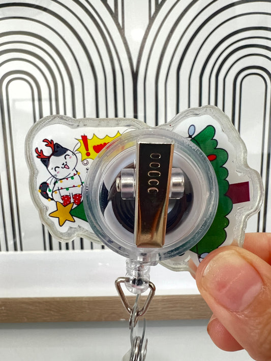 Christmas Cat What badge reel, Christmas badge reel, funny Cat, Christmas Cat shaker, Cat Lover reel, Christmas Tree, Christmas Gift