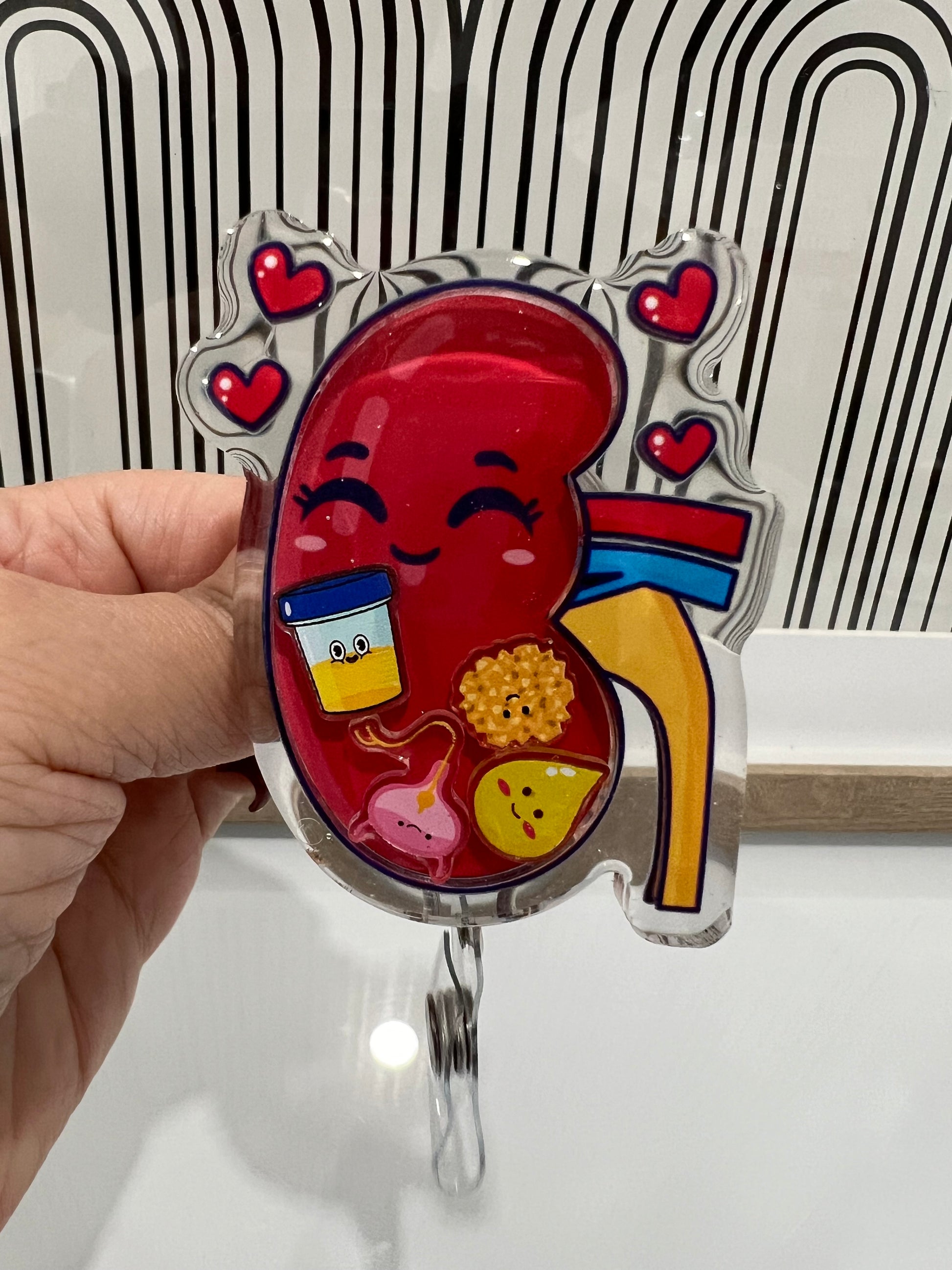 Introducing our Kidney shaker badge reel - the perfect nurse gift! This retractable ID holder features a fun, eye-catching design of a kidney in a shaker, reminding healthcare professionals to "shake off" the stress. It's a charming Christmas keychain present Upgrade your nurse's badge reel with this unique and practical accessory.