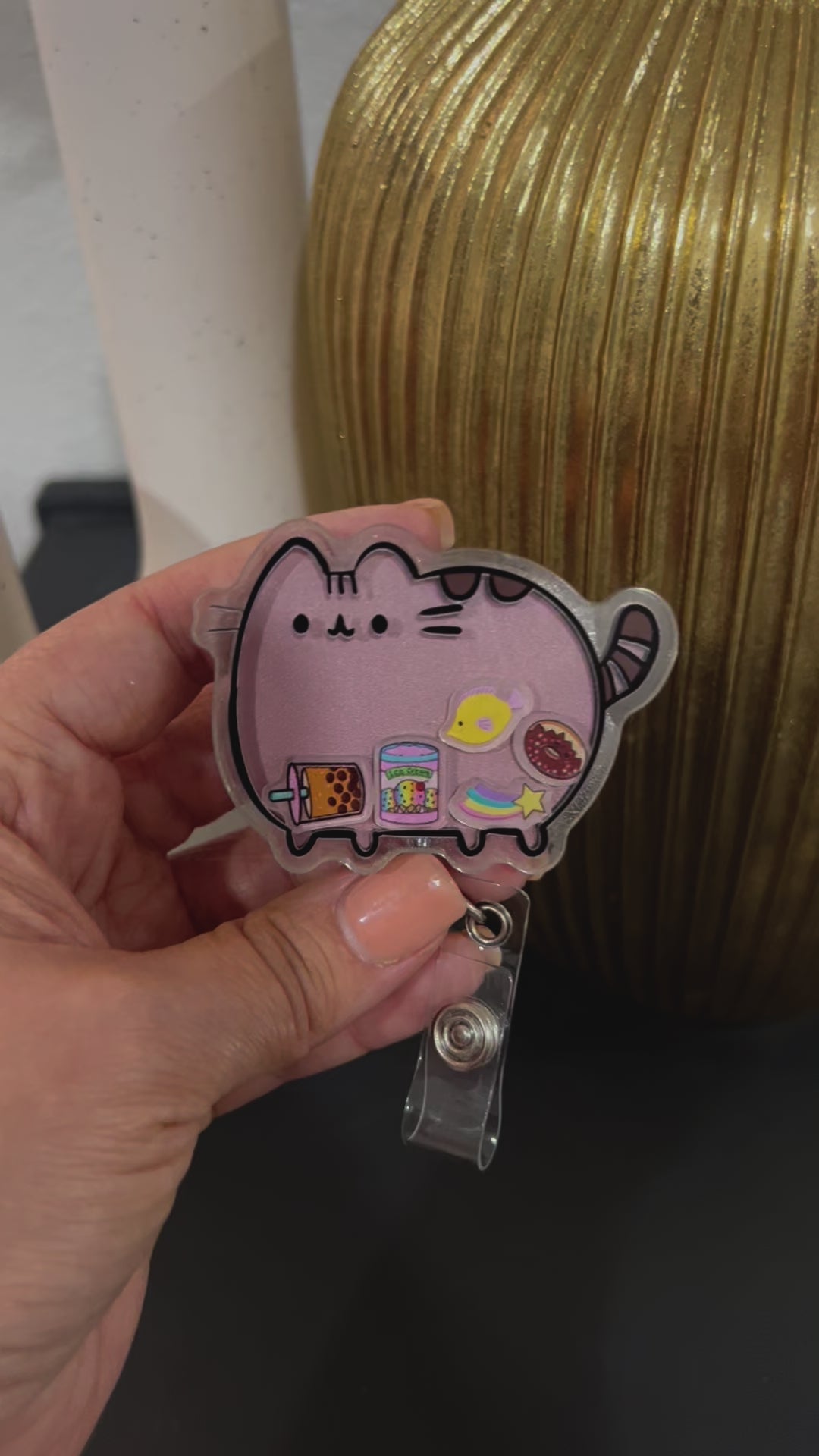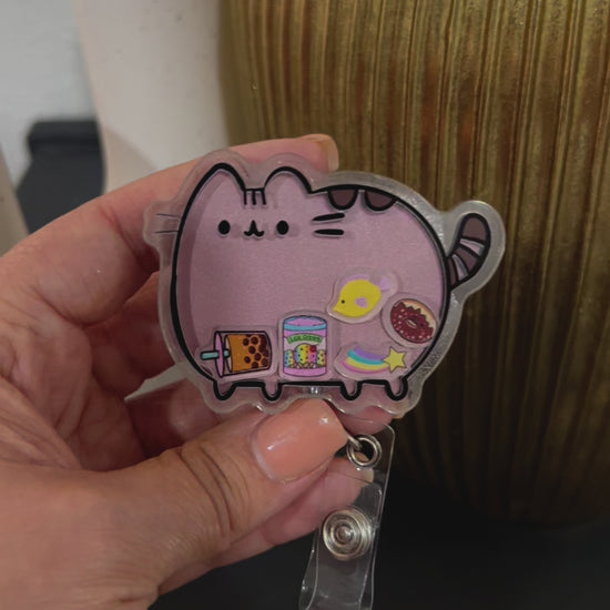 Display your love for cute and fun things with our Shaker Badge Reel featuring a playful cat, donut, boba, and ice cream design. The perfect accessory for any professional setting, this reel keeps your ID secure and adds a touch of personality to your work look.