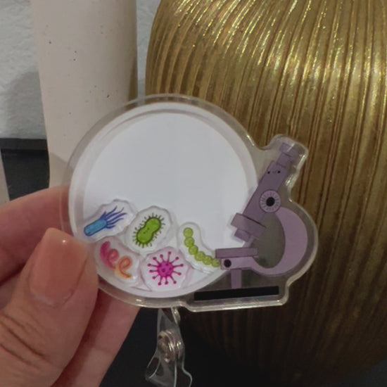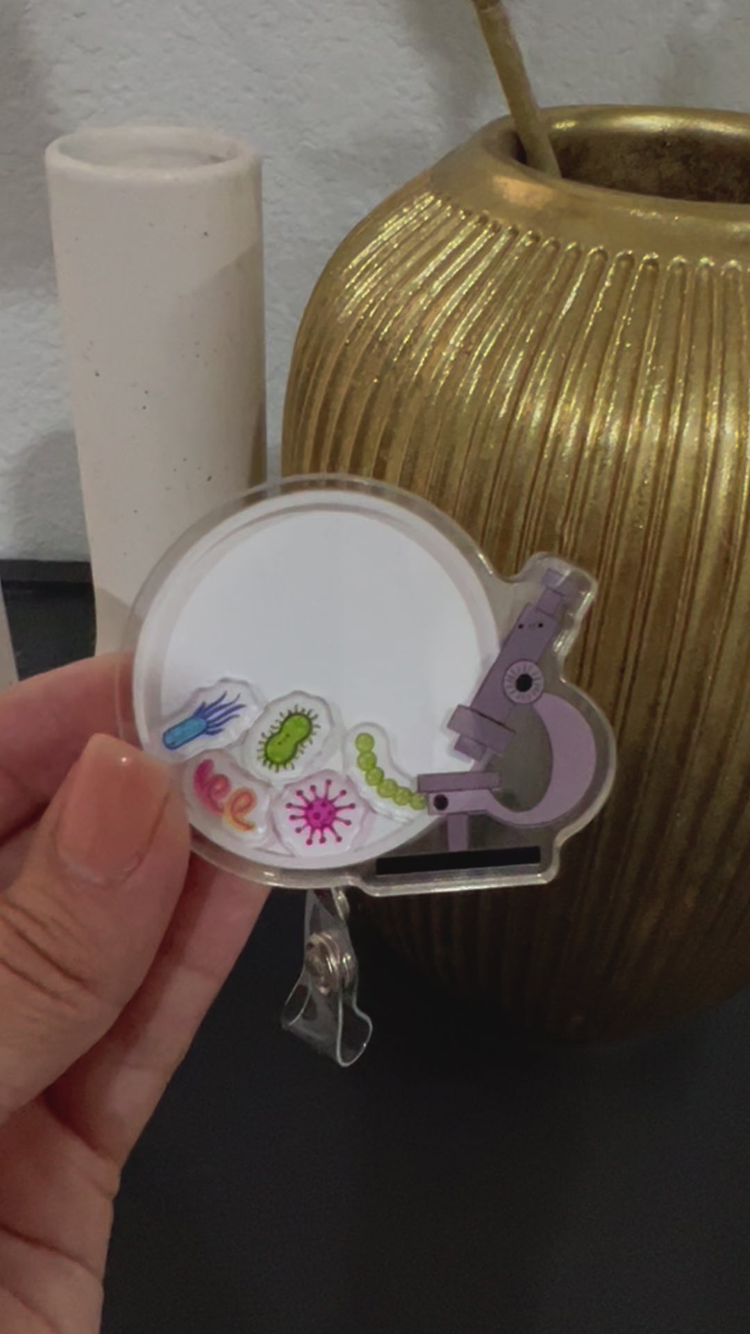 This shaker badge reel features a microscope design, making it perfect for science and medical professionals. It allows for easy access to your ID or security badge, while also showcasing your passion for the field. Add a touch of personality to your work attire with the Shaker badge Reel: Microscope.