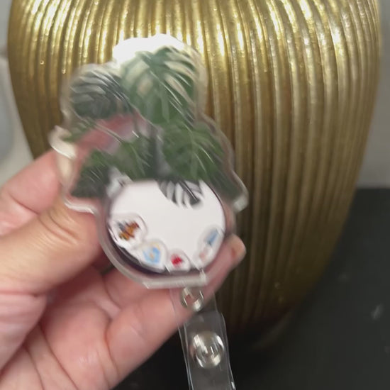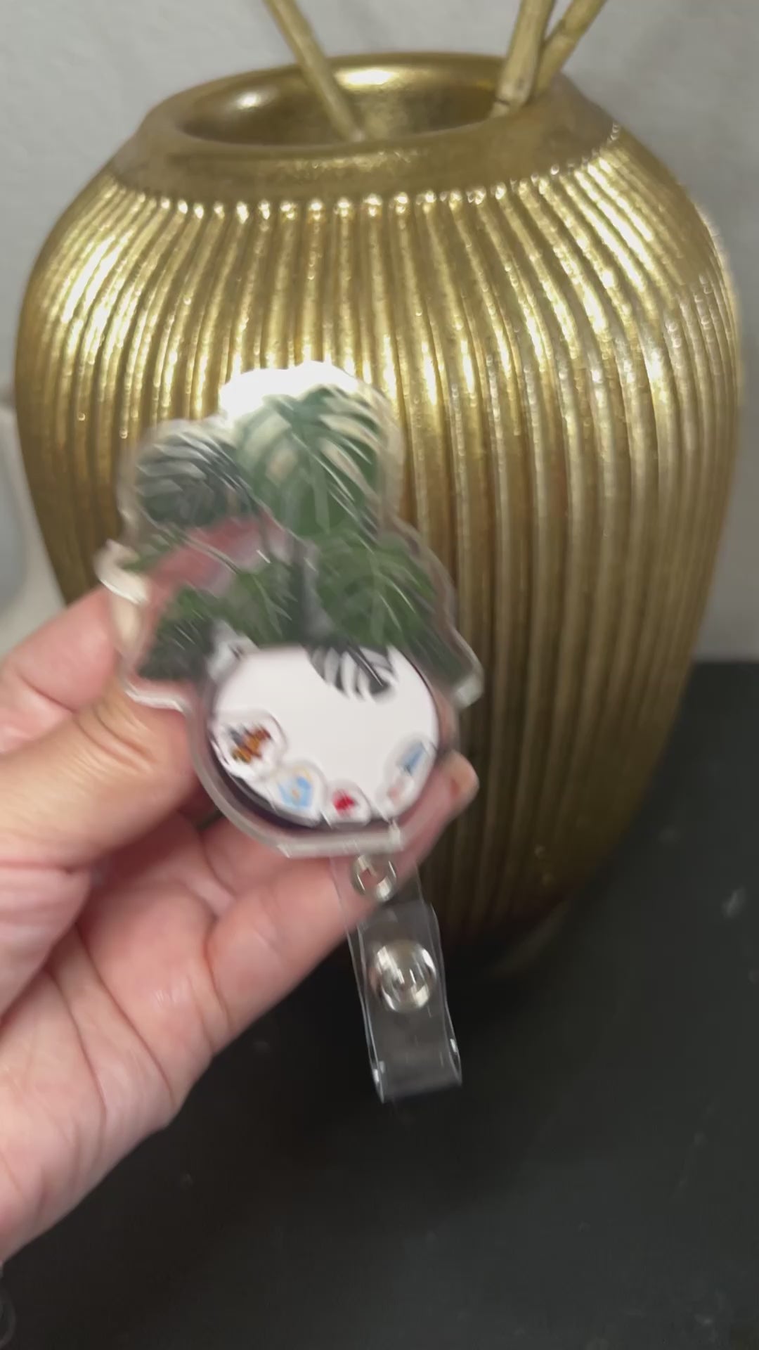 This Shaker badge reel features a fun plant design and is perfect for securely displaying ID badges or keys. With a durable retractable cord, it allows for ease of use and gives a touch of personality to your work attire. Keep your essentials close by and show off your love for plants with this badge reel.