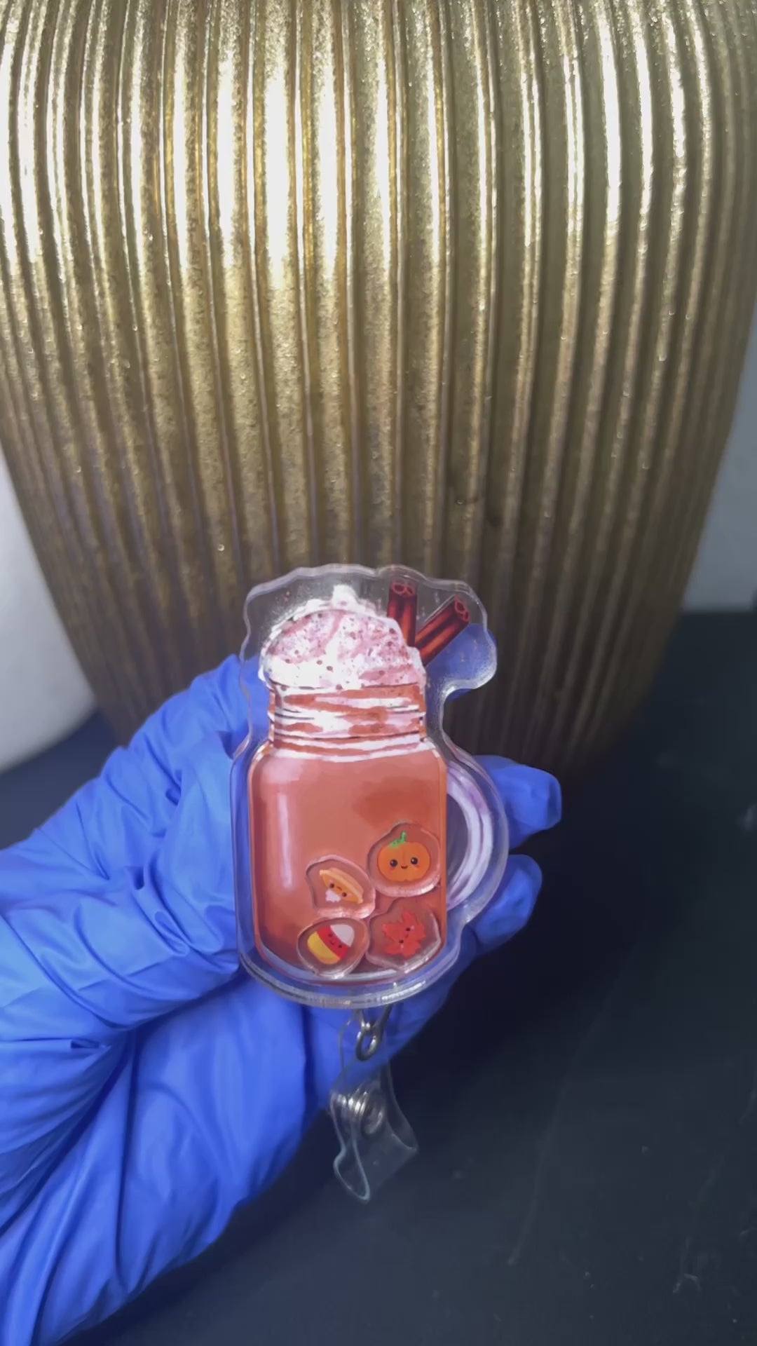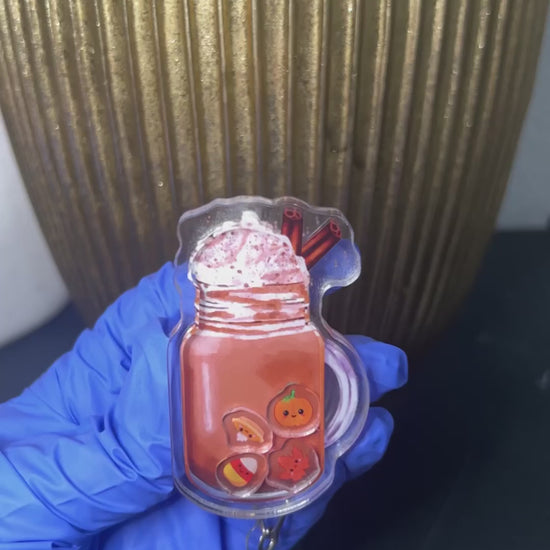 Elevate your badge game with our Shaker Badge Reel in pumpkin spice latte. The shaker feature adds a touch of fun while keeping your badge secure. This fall-inspired design is perfect for any coffee lover.