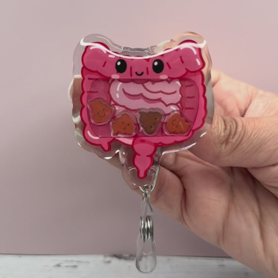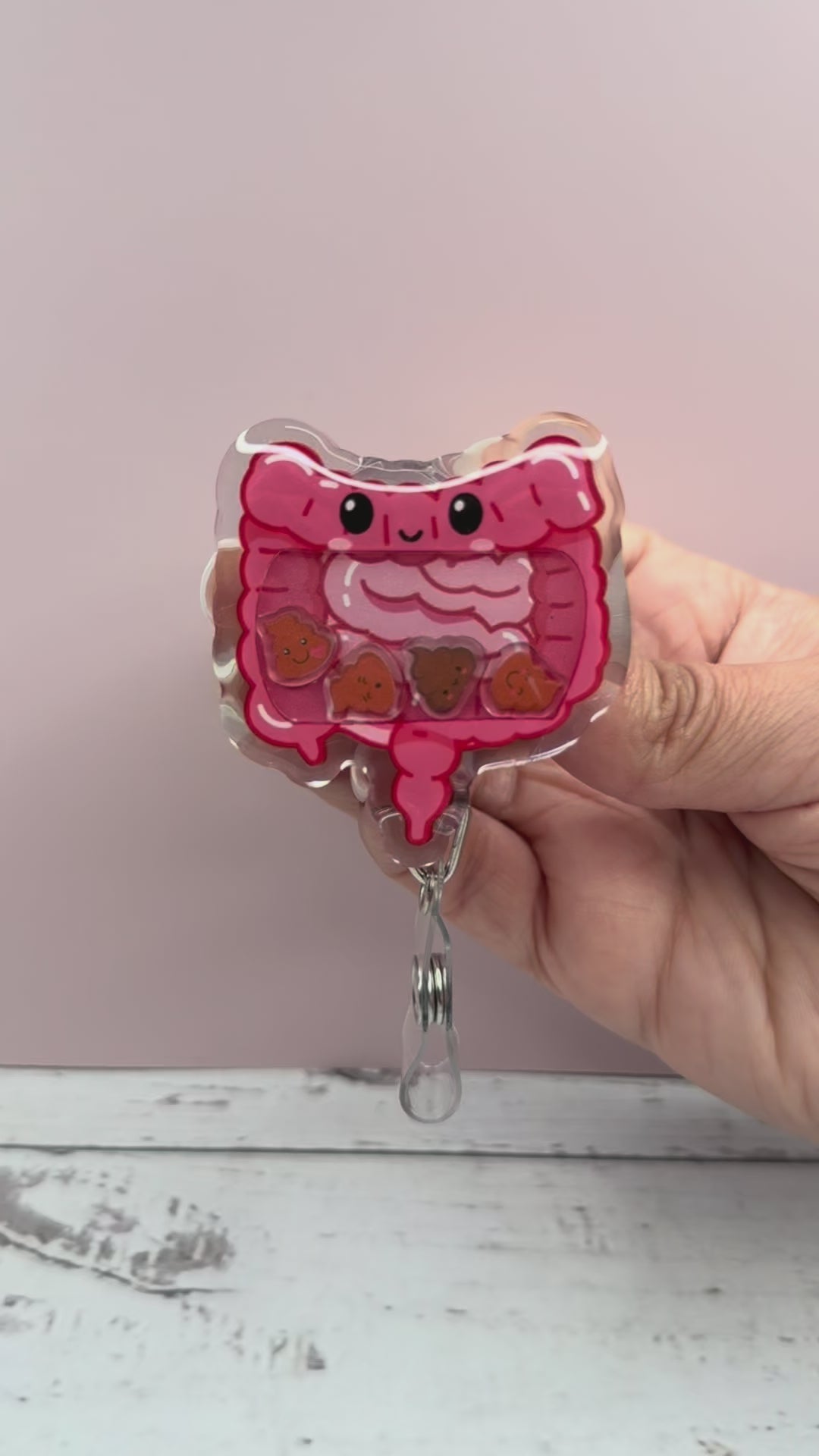 Stomach & Intestine Shaker Badge Reel with Poop Charms — Funny GI Nurse Badge, Gut Health Reel, Medical ID Holder, Gastroenterology Gift