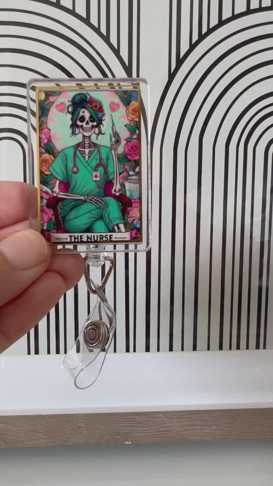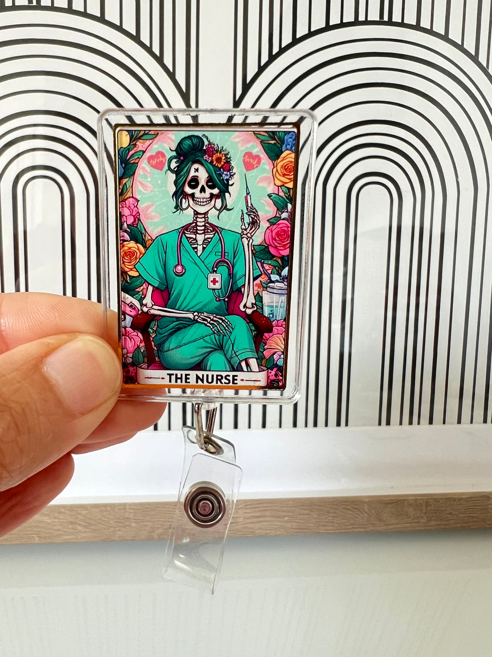 The Nurse Tarot Card badge reel, Skeleton Nurse, Gift For Nurse Registered, Funny Skeleton Nurse Design badge reel, Nursing Witch Skull