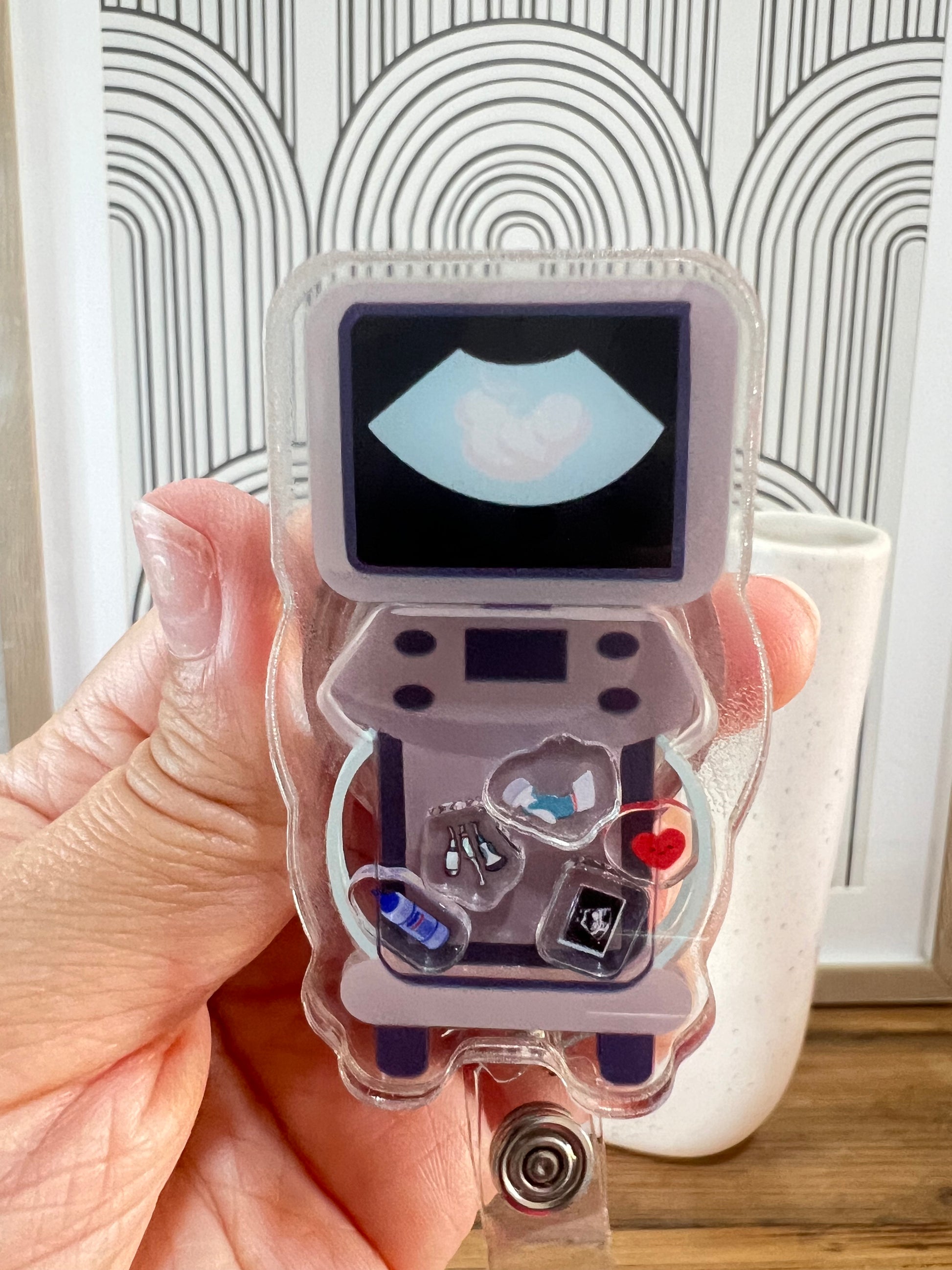 Experience the ease and convenience of our Ultrasound badge reel, designed specifically for sonographers. With its sturdy clip and retractable cord, this badge reel keeps your ID and access cards secure and easily accessible. Show off your profession and passion with this must-have accessory!